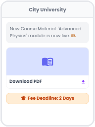 Instant course updates, fee payment reminders, and event alerts to keep students and parents informed.