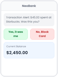 Secure two-factor authentication, fraud alerts with one-tap actions, and account balance updates.