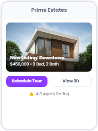 Showcase properties with rich media cards, schedule virtual tours, and engage buyers directly.