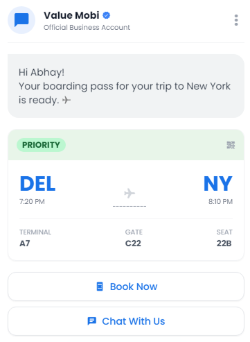 Send boarding passes, rich destination guides, and seamless check-in options directly in chat.