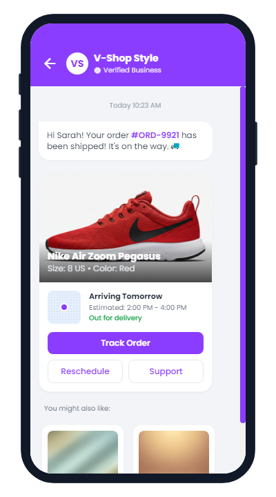 Send visual shipping updates, cart recovery nudges with product images, and collect feedback instantly.